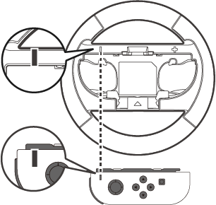 → Secure the alignment of the - buttons of the Joy-Con™ (L) and steering wheel (as shown below).