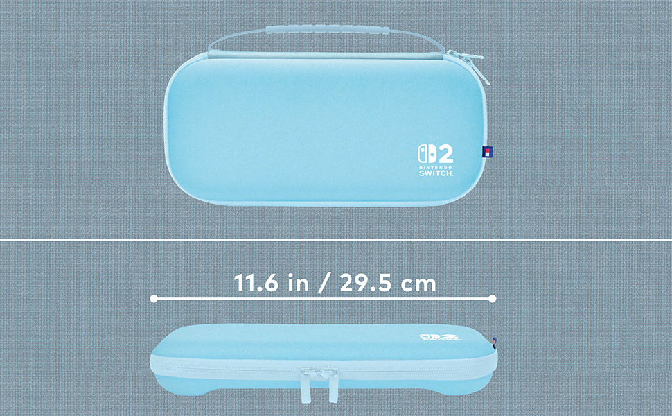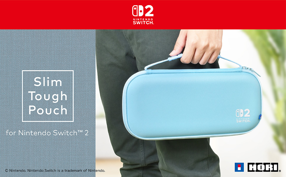 Take your system and games with you on your next game adventure with the HORI Slim Tough Pouch (Light Blue) for Nintendo Switch™ 2. This slim, lightweight pouch places a form-fit protection that is tough and durable. Holds up to 10 game cards and the plush interior keeps your system safe from scratches. Features a convenient carry handle for easy transport. Officially Licensed by Nintendo®.