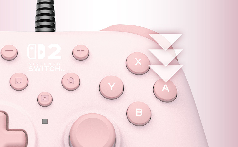 Enjoy plenty of Nintendo gaming sessions with the HORIPAD Turbo for Nintendo Switch™ 2 in Cozy Pink. This sturdy, ergonomic controller boasts an array of features including programmable rear buttons, precision analog sticks, Turbo settings and more. Assign functional to change button functions freely to customize your play experience! Wired functionality provides lightning-fast responses and tournament-ready performance, while an ergonomic grip and a lightweight profile ensure continued comfort. Connect to your system through the USB-A 9.8 ft cable. Compatible with Nintendo Switch™ 2, Nintendo Switch™ and Nintendo Switch™ – OLED Model. Officially licensed by Nintendo®.